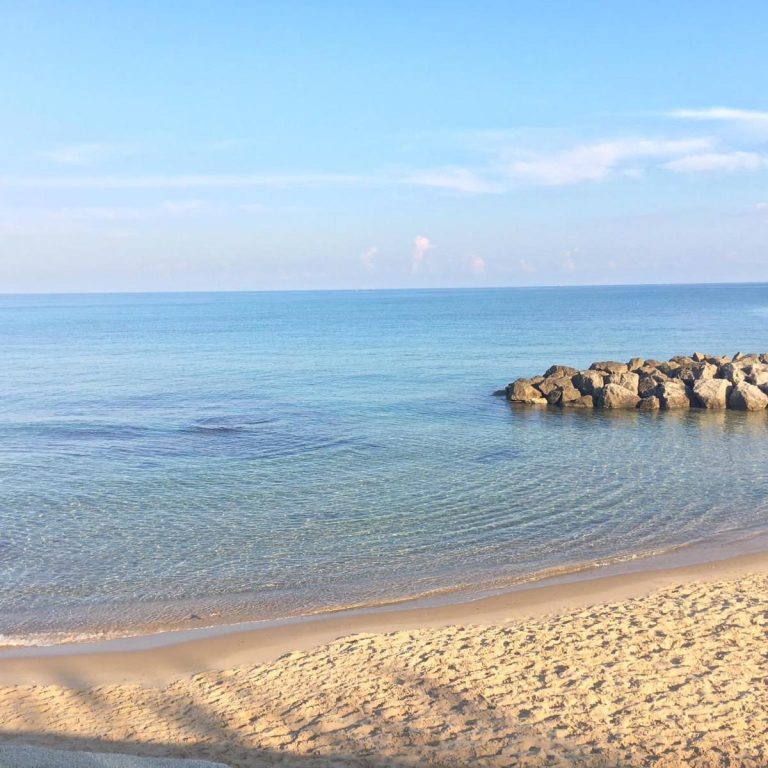 Das Meer ist meist ruhig, mit sanften Wellen und klarem Wasser.